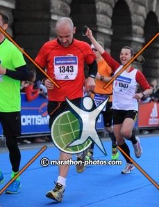 Finišuji po modrém koberci. Sundavám si brýle, směju se, křičím „Jóóó!“, vítězně vystřeluji pravou ruku vzhůru a radostí skáču do vzduchu :-D. Ano, tolik sil v sobě stále mám :-).