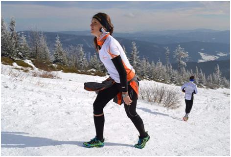 Závod začíná a startovní pole se pomalu dává do pohybu. Zpětně zjišťuju, že do závodu se vydalo 215 běžců. Vybíhám ze zadních pozic, a tak se v prvních metrech snažím propracovat trochu víc dopředu. Chci maximálně využít prvních kilometrů, které jsou u této etapy s minimálním převýšením. Předbíhám pár soupeřů a na louce v mírném stoupání dobíhám i Jarka. Ten má asi menší krizi, protože mu vůbec není do řeči. Jdu před něj a snažím si vypracovat nějaký náskok. Je mi totiž jasné, že až přijde pořádný kopec, bude mě zase stahovat. V následujících minutách zjišťuji, že se mi dnes běží nějak lehce. Nechci však upadnout do předčasné euforie, cíl je ještě daleko. Někteří konkurenti již přecházejí do chůze, ale já se snažím stále běžet. Na trati potkávám další soupeře, kterým to dneska moc nechutná a nechávám je za sebou. Jsem přibližně v polovině trasy. Teď mě však čeká zdolávání výškových metrů. V prudších stoupáních místy přecházím do chůze a šetřím síly. Na rovině se opět snažím přesvědčit nohy k běhu. Z dálky vidím týmovou bundičku a oranžové podkolenky. Není to nikdo jiný než Míša a vedle její parťačka Oli. „Power“ již trochu dochází a začínám cítit stehna, ale fandění od týmových kolegyň mě povzbudí do dalšího boje. Zaslechnu, jak někdo hlásí pořadí 91. Nechápu. Slyšela jsem dobře??? První stovka???  Štípnu se…já snad spím a zdá se mi tento krásný sen. Za chvilku kolem mě probíhá Marián. Co ten tady dělá??? Předbíhá mě a já se marně snažím držet s ním krok. Zatímco Marián ještě běží, já už jsem se smířila s chůzí. Zdá se mi, že mám šnečí tempo, ale naštěstí se na mě zezadu nikdo netlačí. Trochu zrychluji před závěrečnou sjezdovkou. Ve sjezdovce už jdu v předklonu. Dostávám se na asfalt. Zbývá posledních pár metrů. Najednou cítím vítr v zádech. Díky jeho podpoře se ještě dokážu vyburcovat v závěrečný běh do cíle. Přikládám svůj čip a dívám se na hodinky. Jsem happy jak dva grepy, je na nich totiž čas 55:43 a to znamená vylepšení osobáku na této trati. Dokonce v chatě stíhám i dvojčata a běžíme pak společně dolů.
