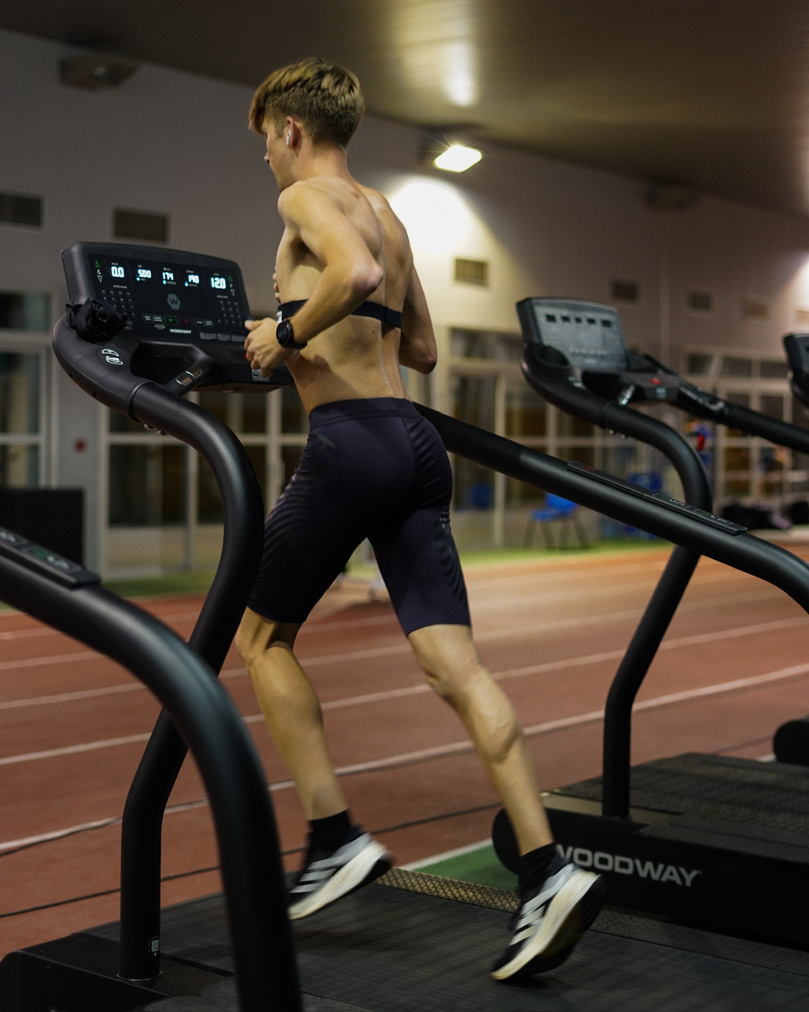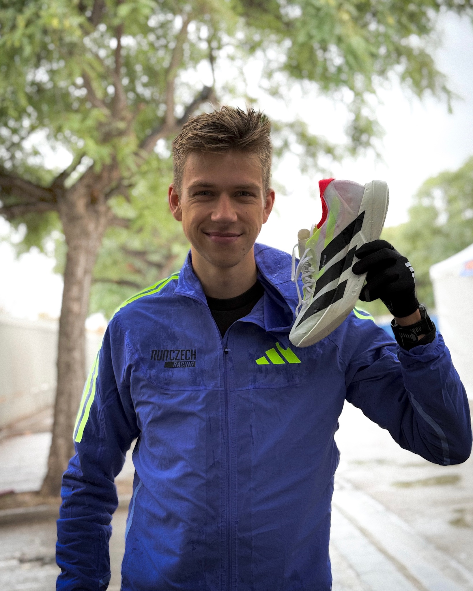 Snažil jsem se jet přesně tak, jak jsem byl zvyklý před závodem. Nezkoušel jsem nic nového. Než jsem vyrazil na start, dal jsem čtyři minuty dýchání s Isocapnicem. Potom jsem šel zhruba kilometr na start, odkud jsem vyrazil na rozklus – 4 km (hodinu před závodem). Začal jsem volně, postupně se do toho dostával, nakonec z toho bylo tempo 4:15/km. Pak dynamický strečink, běžecká abeceda, hodil jsem na nohy závodní boty a dal si čtyři lehké rovinky.