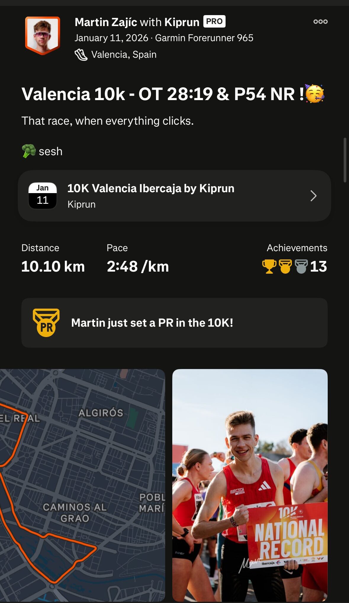 Valencie je zvláštní místo. Na mapě atletického světa je to město, kde se čas neprosí – čas se bere. Rovná silnice, tempo, které se nezastaví, a startovní pole, ve kterém se nikdo neptá, odkud jsi. Jen se dívá, jestli se udržíš. A právě tam – v závodě, kde letos padl i evropský rekord na 10 km – si Martin Zajíc sáhl na výkon, který v českém kontextu zní skoro nepatřičně: 28:19. Český rekord. Posun o dvě vteřiny. A hlavně: zpráva, že „to jde“.
