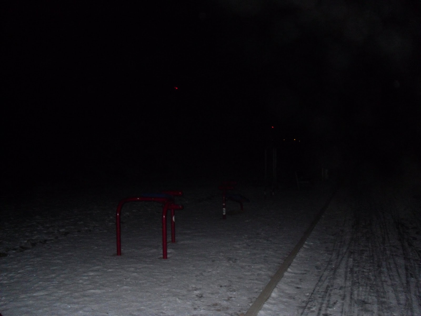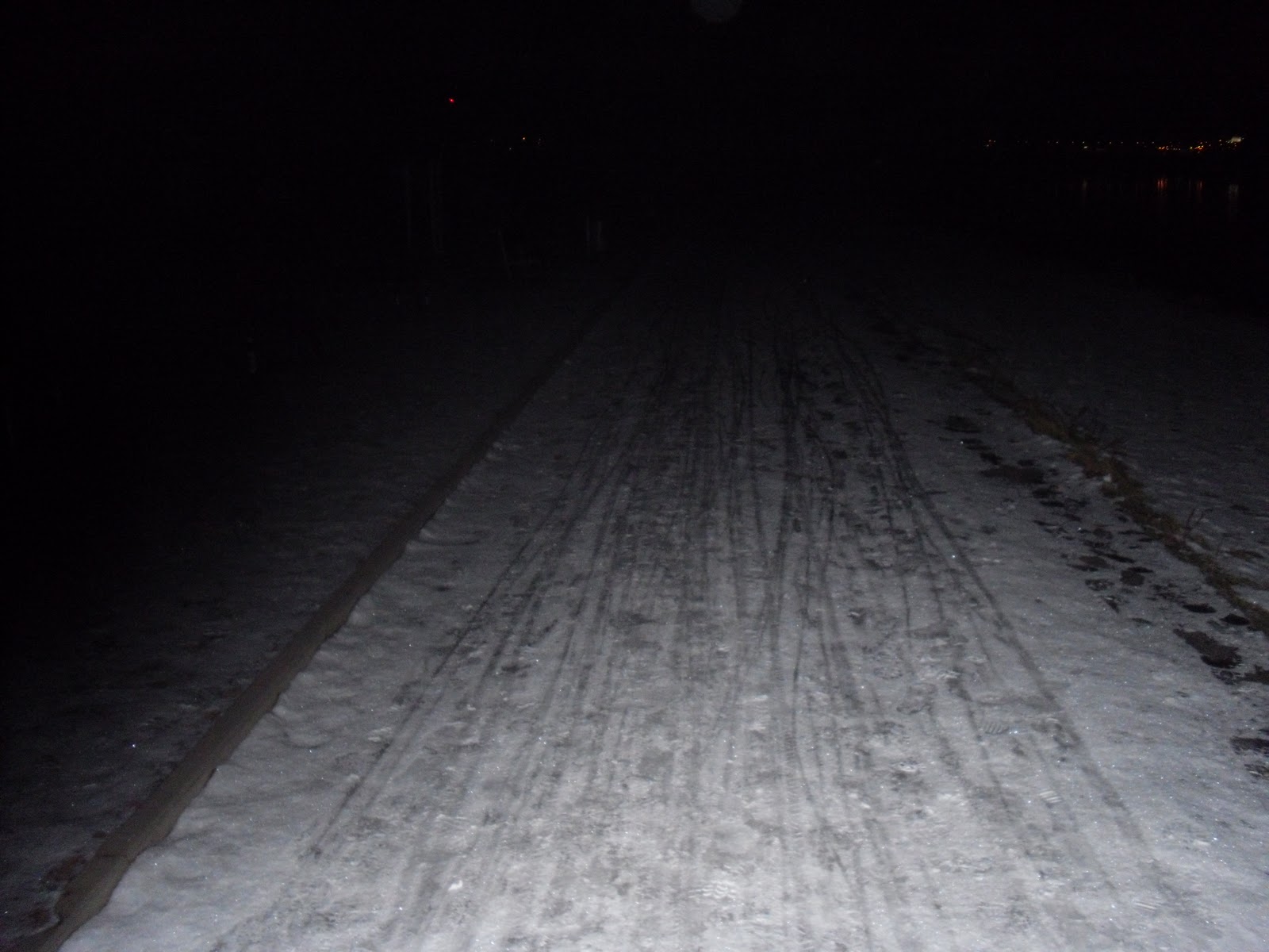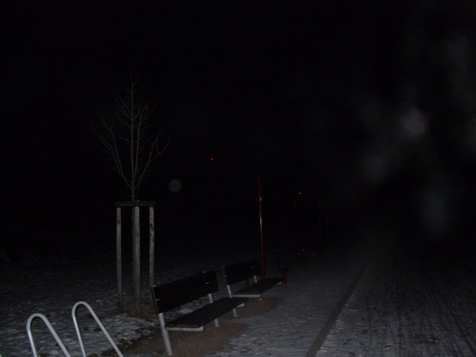 Na této stezce platí pravidlo nejenom dobře svítit na kole, ale i vidět z kola na cestu a okolí. Vidět a být viděn. Když je hodně sněhu, žádného cyklistu tu nepotkáte, s lepším počasím se sem a tam objeví, včetně běžců a běžkyň. Je to proklatě strašidelná scenérie, na druhou stranu tady ještě nějakého živáčka spatříte, za čtyři kilometry už v podstatě nikoho, kromě vlaku.