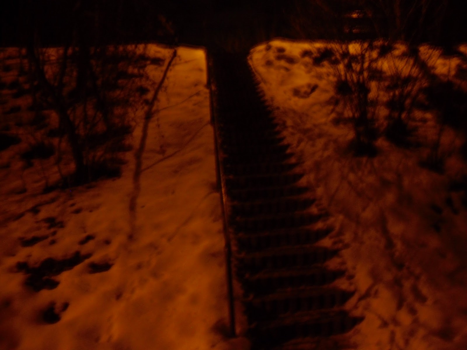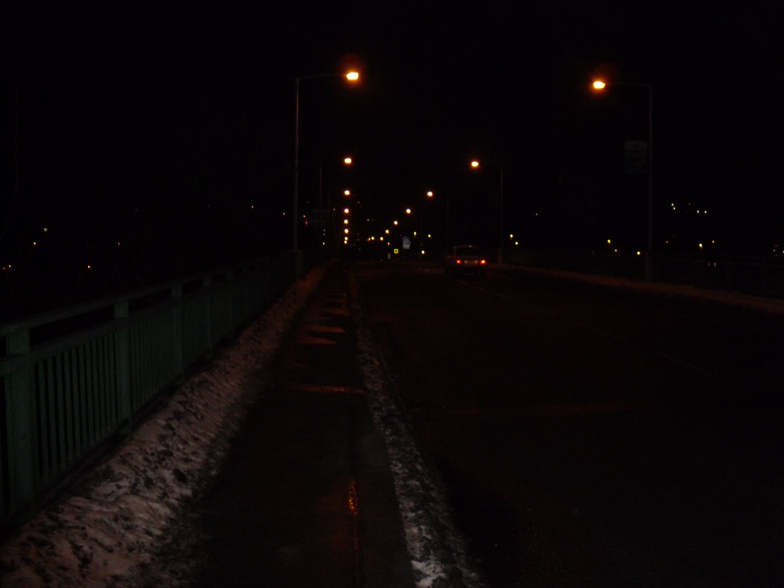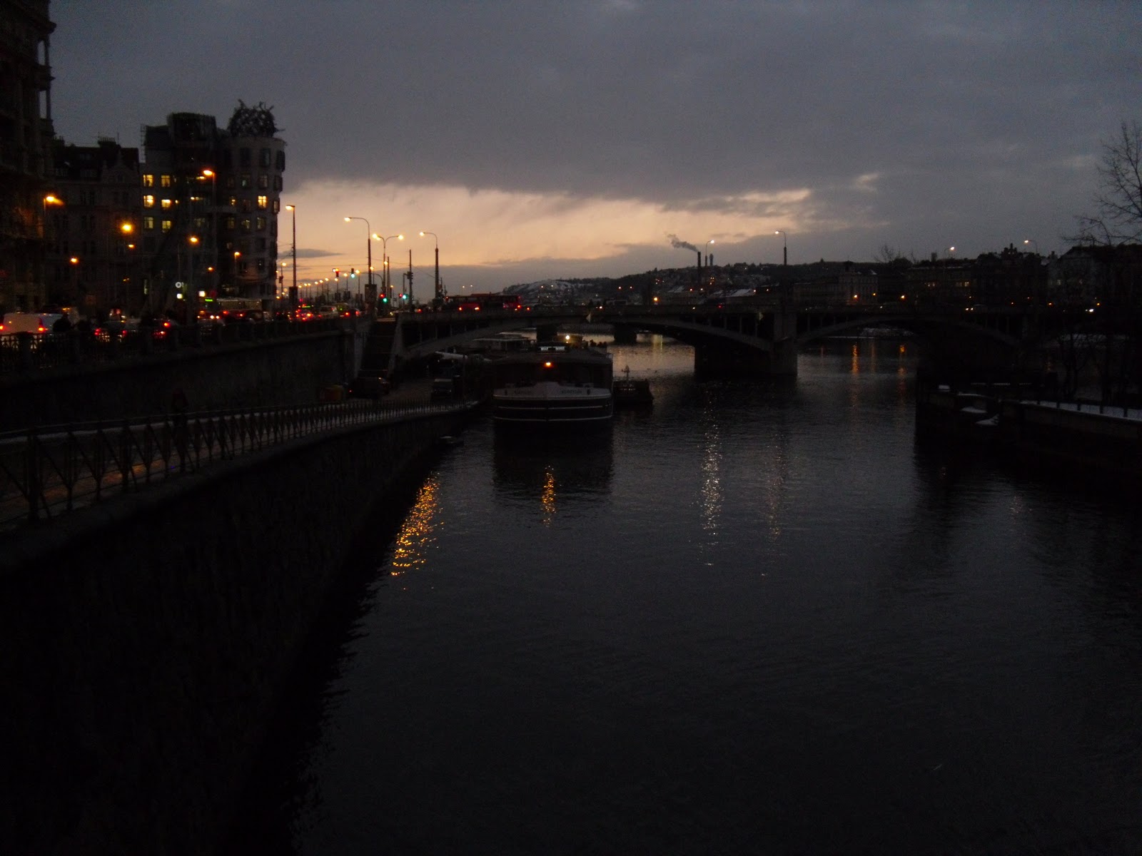 Tady občas na mě padají chmury, nikde ani živáčka, jen Vy sám, sníh, vpravo voda, vzdálené mosty a na pravém břehu Vltavy vidíte velmi vzdálené kužele zářících světlometů automobilů. Pečlivě sleduji okolí, zda se tu nepohybují nějaká individua, občas se ohlédnu zpět, ale většinou mě překvapí ženy s kočárky. No sakriš, tak sem bych se teda jako žena s kočárkem osobně hodně bál! Některé chodce spatříte až na poslední chvíli, zdají se Vám totiž jako jeden z mnoha tmavých stínů. Nejsou vůbec osvětlení a ani si neuvědomují, že byste je mohl také přehlídnout. Při běhu to není ani takový problém, ale na kole je to nebezpečné.