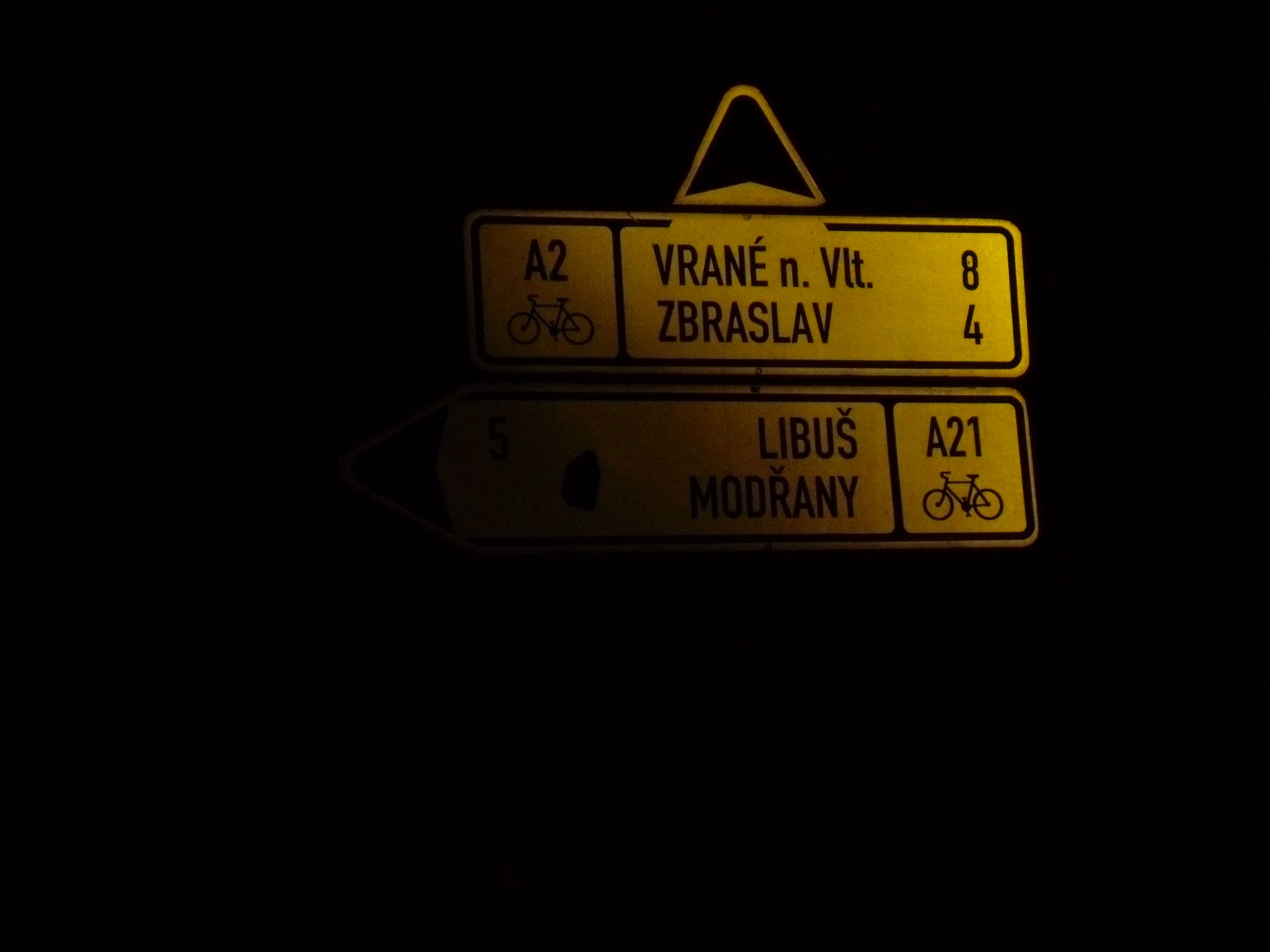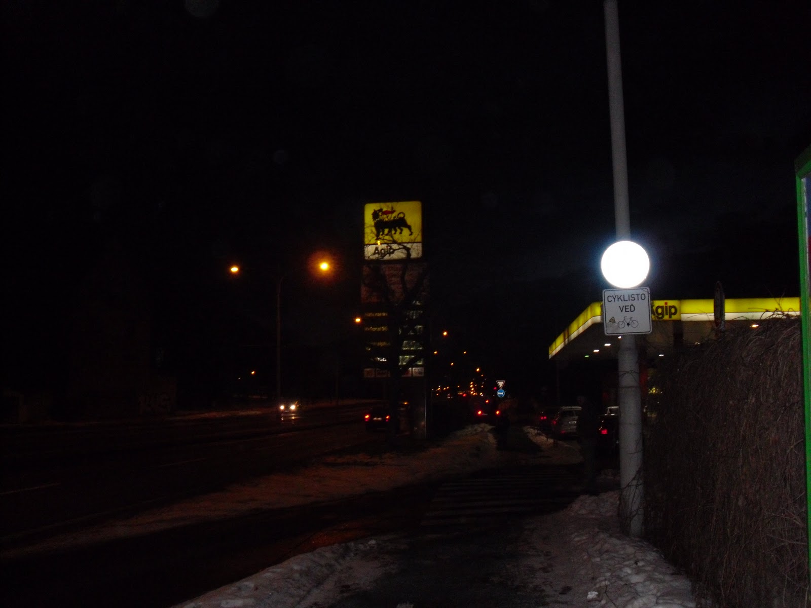 Za “Agipkou” jsem pokračoval po neupravené stezce dál k Modřanům po Pobřežní cestě. Dostáváte se na stezku, kde zpočátku svítí lampy kolem, ale díky stromům je tu mnohem větší tma a lampy stezku přestanou po chvilce kolovat. Párkrát se ještě vrátí, aby Vám svítily hezky na cestu, ale po čase se zcela vytratí. Silnice je od Vás hodně vlevo a za chvíli o ní ani nevíte.