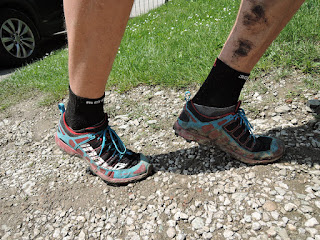 A už je to tady startovní čára a koukám dolů na své krásné nové botky s pěknou barevnou kombinací. Tři dva jedna Start. Začátek tratě po polní rozblácené cestě mírně do kopce až k Choči. Okamžitě cítím jak podrážka zabírá a nepohne se ani o kousíček. Asi po dvou kilometrech začal opravdový kopec. Krásně se to zlomilo do stěny z bahna a kořenů. A perfektně vymyšlená podrážka opět nezklamala a krásně drží, navíc se vůbec nezanáší a také musím ocenit lehkost bot. Přišla kamenitá pasáž kde se bota tvářila občas trochu nejistě ale přesto to zvládla. Postupně jsem se probojovával startovním polem až jsem najednou předbíhal celkově čtvrtého a obsadil jeho pozici. Proběhl jsem pasáže na skále pak technické místo mezi kořeny a cíl. Super pocit a nádherný závod. O chvilku později už jsem si vychutnával v seběhu jistotu na kluzkém terénu a vložil jsem do bot všechnu důvěru, kterou si zaslouží. Jediné co mi trochu dělalo problém byla lehce odřená pata ale věřím že se boty za chvilku vymačkají a bude to v pohodě. Za mne bezvadná zkušenost s těmito botami!
