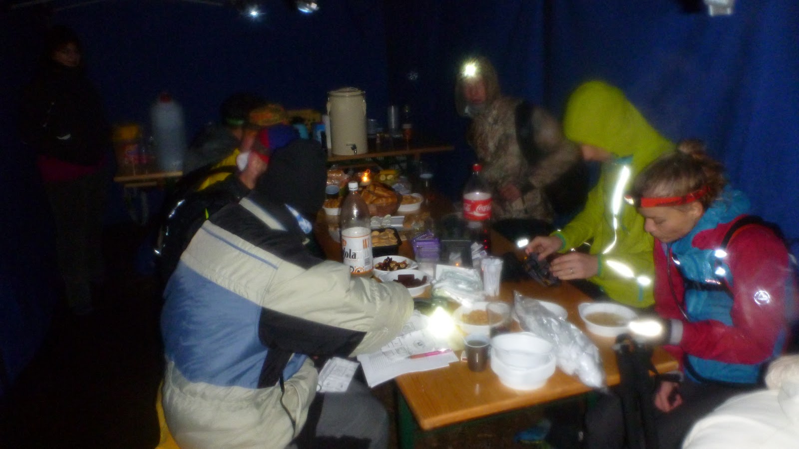 Do Volar tak dorážím kolem 3 ráno. V místní hasičárně je další občerstvovačka. Pro mílaře je to cca půlka tratě a čekají nás tu i drop bagy. Tak si aspoň vezmu nepromokavou bundu do deště. Uvnitř je dost nacpáno. K mému překvapení je tu ještě i hodně mílařu a dokonce i Martin Hlaváč, který si tu spojeně chrní na gauči. Jsem z toho Bobíka celkem zničenej a promočenej. Musím se dát do kupy. Kopu do sebe snad 5 horkých čajů a láduju se jídem. Vším co tu je. Převlíknu se do teplejší ovce z drop bagu, ale bundu si nakonec neberu, dosavadní šuska bude stačit. Všichni mílaři jsou už dávno pryč a tak se je pomalu vydávám stíhat. Martin se mezitím průběžně budí, sosá pivko a zase usíná. Tak ho tu nechám a vybíhám sám stíhat mílaře přede mnou, aby to nebyla ve finále taková ostuda.