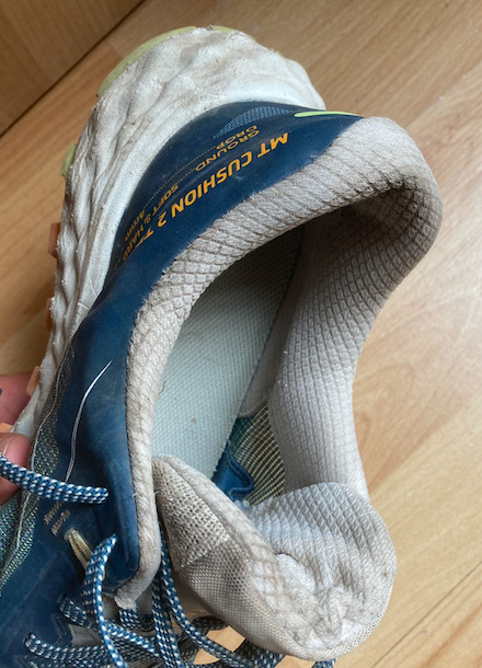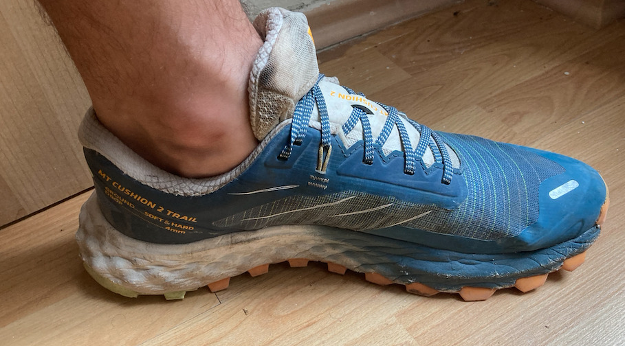 MT Cushion 2 jsou pevné, odolné a pohodlné boty, které váží 295 g ve velikosti 42. Jsou tedy poměrně robusní. U malíku jsou zárověň užší než většina modelů a proto bychom je nevolili v případě nadprůměrně širokých nohou. To je totiž i náš případ a tuto část nohy jsme při běhu vnímali. Tento efekt se s časem kumuluje a proto jsme je jen několikkrát vzali na tréninky o vzdálenostech od půlmaratonu výše. Po tréninku jsme totiž třeba i několik hodin to místo cítili. O to nepříjemnější je, když například při rychlém seběhu líznete malíkem větší kámen. Nejsou to tedy boty pro všechny tvary nohou a každý by tedy měl při výběru šířku svého chodidla uvážit.