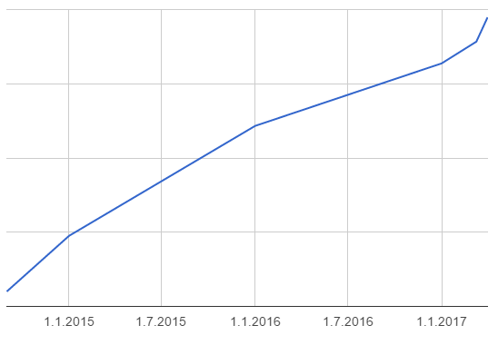 Jak píšu v tomto článku, nějaké úspory jsem začala vytvářet až před necelými třemi roky. Data do toho vstupující jsem hledala různě po starých výpisech z účtů a podobně; čím víc do minulosti, tím víc nepřesné, ale to nevadí, když to číslo stejně nevidíte. Důležitý je trend. A hlavně jeho změna za poslední měsíc. S tím sklonem, jaký ta křivka měla, bych na tom většinu času nebyla špatně. Chci-li ale nashromáždit tolik peněz, abych nemusela pracovat, za nějakou rozumnou dobu, tak je potřeba, aby byla strmější, alespoň tak jako teď.
