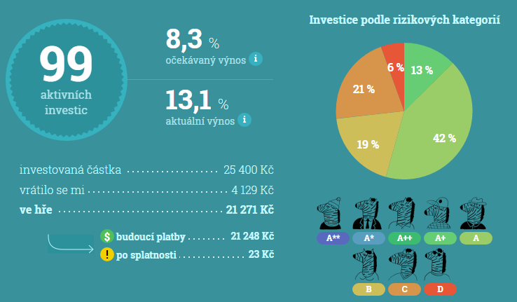 Výhoda je, že je to v korunách, a tudíž není potřeba čekat, až se ČNB umoudří. Zatím se mi nestalo, že by mi nějaká půjčka úplně vypadla. Občas někdo zaplatí o pár dní později, ale nakonec vždycky zaplatí. Za březen se mi povedlo vychytat 37 nových půjček. Yay. Budu s tím pokračovat podobným tempem, jak to půjde.