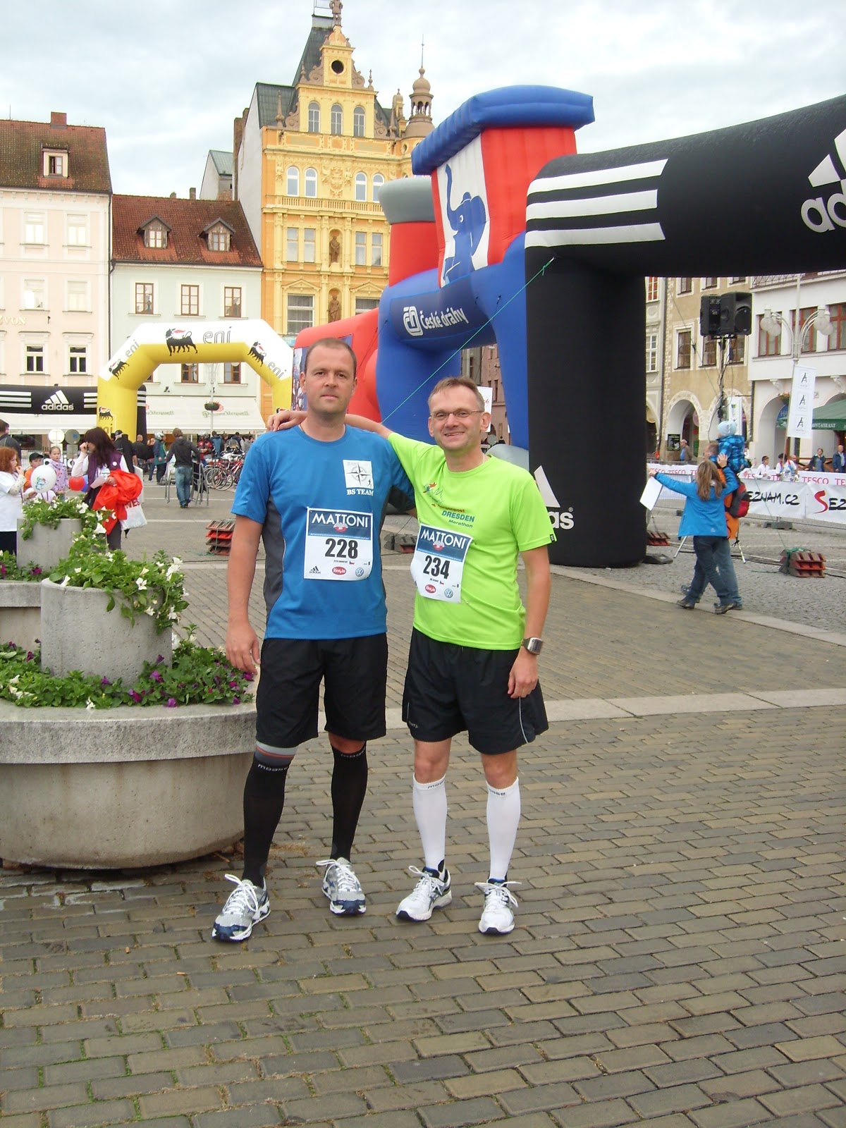 Startovní výstřel zazněl v 19hod a na trať se vydalo kolem 1400 běžčů z čehož bylo 1025 půlmaratonců. Závod jsem rozeběhl velice svižně, protože počasí bylo opravdu běžecké. Do 10km jsem cítil ještě večeři, protože jsme jídlo dojedli asi hodinu a půl před startem, i když jsem věděl, že to není ideální, ale nedalo se s tím nic dělat. Podél trati byla spousta fandů za což jim patří velký dík. 1-2 km jsem běžel ve skupince 4 nebo 5 lidí s doktorem Pirkem, protože to je prima pocit běžet s takto významnou osobností. Při průběhu 10km 0:44:39 jsem viděl, že pokud vydržím rozeběhnuté tempo, tak poběžím na úrovni mého osobáku. Nakonec to byl nový osobní rekord v cílovém čase 1:34:14 (real 1:34:02) a pro mě pěkné umístění v kategorii na 20. místě. Petr závod nedokončil, protože se mu začínají ozývat problémy s kolenem, kde zápasil v loňském roce s meniskem. Pro jeho zdraví bylo to nejdůležitější co mohl udělat, než koleno zbytečně přetěžovat.