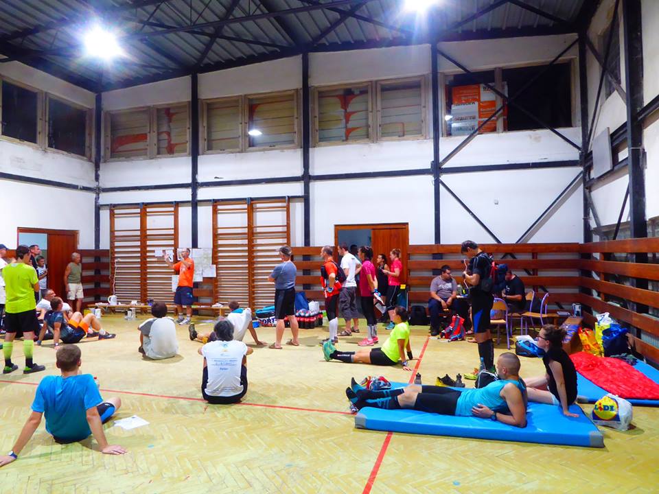 Výklad trati v tělocvičně před startem. Hovoří Slavo. Foto: Peter Green
