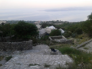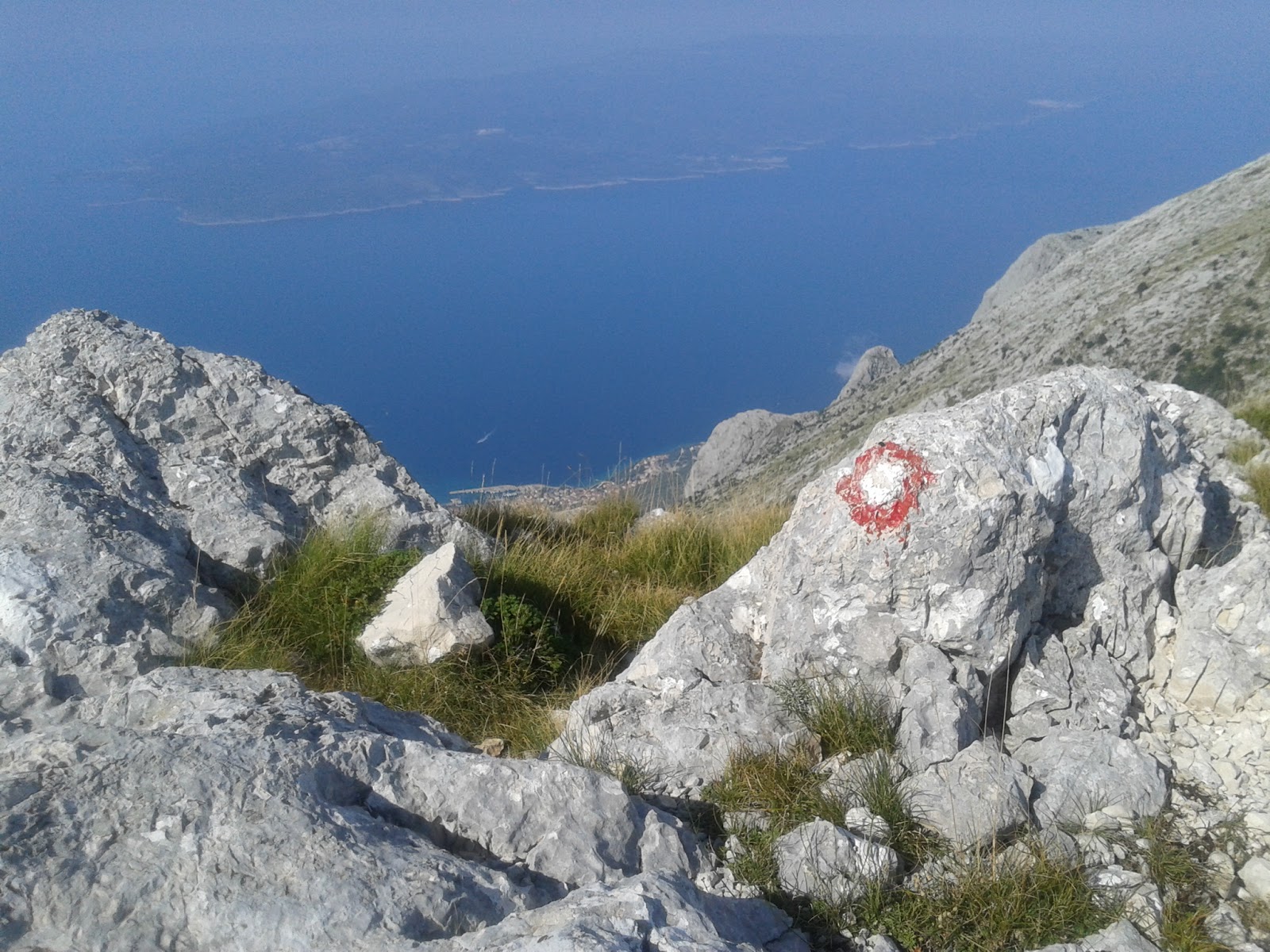 Při návratu dolů také potkávám starší manželský pár jak stoupá vzhůru a hledá cestu, a tak se rukama nohama snažím vysvětlovat kudy vede cesta až se z nich vyklubou Češi, no bodeť, kdo jiný by se v létě na slunci potuloval v horách Biokova. Kromě značení cesty stačíme probrat další nebezpečí – hady, oni prý viděli hady dva (už je mi jasné, proč mají v rukách dlouhé dřevěné hole), já neviděl ani jedno a tak doufám, že kdyby se tak stalo, že budu rychlý. Čím více jsem dole, tím je větší horko, v Topići namáčím tričko a pokračuji dál.