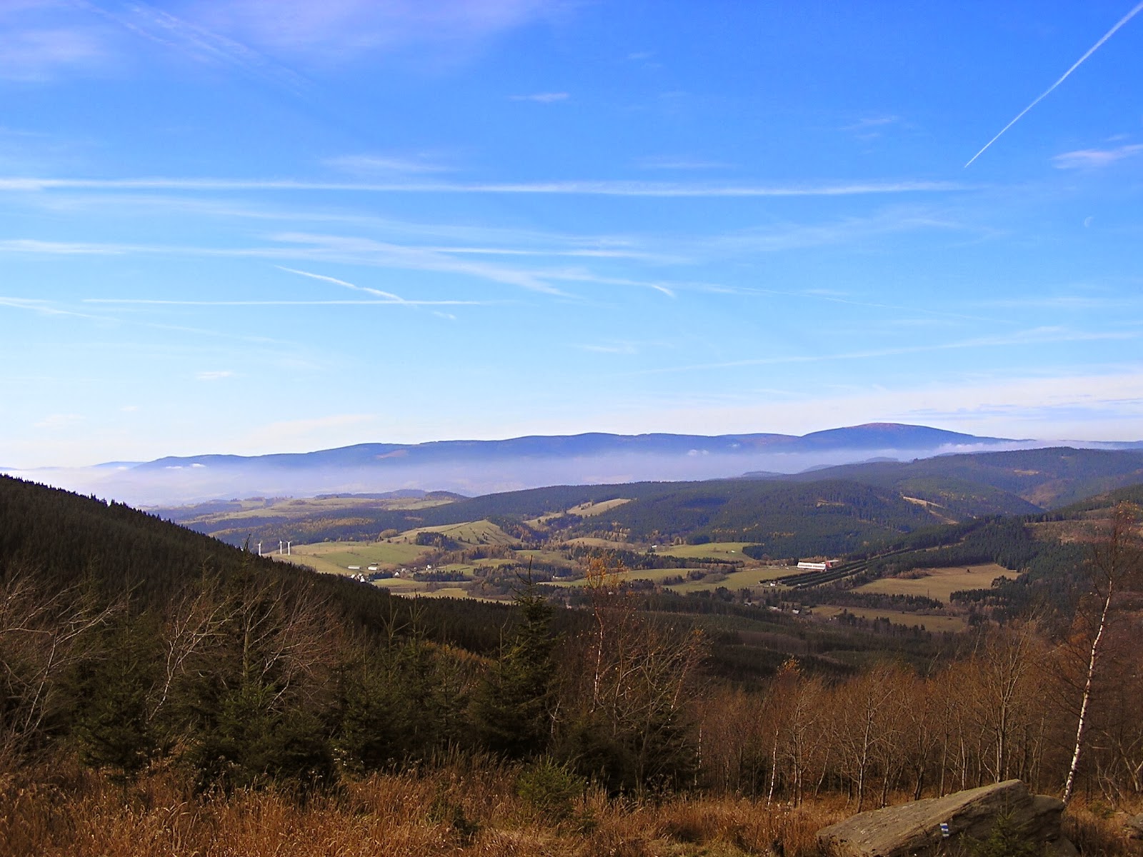 Jeseníky osada Bobrovník. Mám ssebou věci na běhání a chci si střihnout nějaký pěkný výběh po kopečkách. Ale v sobotu se mi nechce z postele (nějak mi nedělá dobře to volno, sem přespanej a pak v noci nemůžu spat, tím pádem pak usnu nad ránem a když mám brzo vstávat, tak se mi nechce…) Takže nakonec je z toho jenom výlet na Šerák a zpět. Krásný podzimní den! Až na ty davy lidí, ale co už, na to si člověk bude muset asi pomalu u nás v ČR zvyknout… Přece si nedám vzít své milované hory, kvuli pár turistům navíc. 🙂