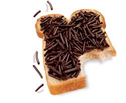 No nevím, jestli náš rodinný název (myší bobky J ) vám napoví, co to vlastně je. V Čechách se to dříve hodně používalo jako ozdoba na dort, zmrzlinový pohár, taková finální dekorace dezertu. Řekla bych, že už to u nás moc nefrčí, možná babičky nám tím ještě ozdobí polárkový dort, ale tady?! Věřte nebo ne, jedí to hodně, často, a dokonce i k obědu! Vezmou si krajíc chleba, někdy ho pomažou máslem a nasypou na to ideálně čokoládové myší bobky!