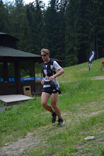 Docela to utíká už jsme na sjezdovce pod Lysou, nahoře pár fanoušků povzbuzuje, na občerstvovačce beru láhve s pitím a mažu si to dolů do druhého lístku směr Krásná, Filip nasadí neskutečné tempo v seběhu a mizí nám z dohledu, běžím dolů spolu s Víťou za náma je Mára a další. Docela si to svištíme žádné flákání na Krásné jsme docela rychle, dole dobíháme Filipa a to jěště vidíme toho opičáka v bílém dresu 🙂500m před náma-zase bloudil.., to už ale naposled..do kopce jdeme svižně, kecáme, když to jde běžíme, další Lysá se blíží a už se těším na nějaký meloun nebo něco štavnatého..Filip mírně utíká pořád se s Vítou držíme jeden druhého až na Lysou..Víta cosi říká pod vousy „není kam se hnát“..no uvidíme..občerstovačka rychlá a valím dolů na Mazák, první turisti se už trousí na horu pár jich houkne cosi jako „to je nějaky zavod nebo co ??“ docela mě zlobí promočené nohy z ranní sjezdovky a nemůžu to pořádně pustit jak je zvykem, takže utíkám, kličkuji mezi turisty, davám gel a asfalt do Mazáku je tady, střelba dolů a jak na houpačce opět nahoru, toto letí to není možné, hodinky nemám takže, mě nemá co rozptylovat, běžím traverzem ke žluté přede mnou nikdo za mnou nikdo, dobrý…