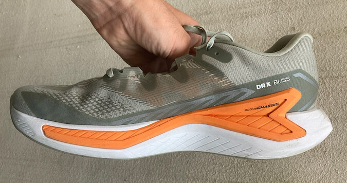 Model DRX BLISS je vyvinutý s cílem vytvořit botu s maximální stabilitou a komfortem. Ať už s ní došlápnete jakkoliv, bota se sama srovná a dopadnete rovně. Primárně je určená na silnici a zpevněné povrchy. Zaměřením je to objemová tréninková bota a hodí se na pohodové aerobní tréninky.