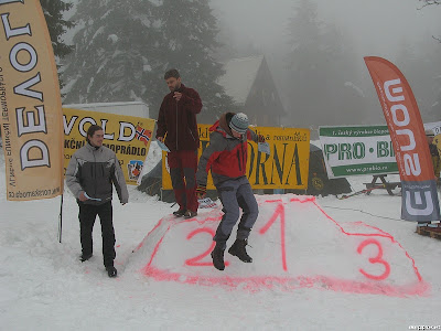NA MÍSTĚ: Sobotní dopoledne, Rychlebské hory. Sněhu kupy. Stavíme stan u kraje sjezdovky. To bude naše základna. Za chvíli začne závod a my budeme jako šílenci lítat na tříkilometrovém okruhu, střídat se jako štafeta a zkusíme, kolik toho dokážeme ujet. Zatím mi to připadá neskutečné, tělo spustilo obranný mechanismus a jakoby si vůbec neuvědomovalo, co ho čeká v příštích hodinách.