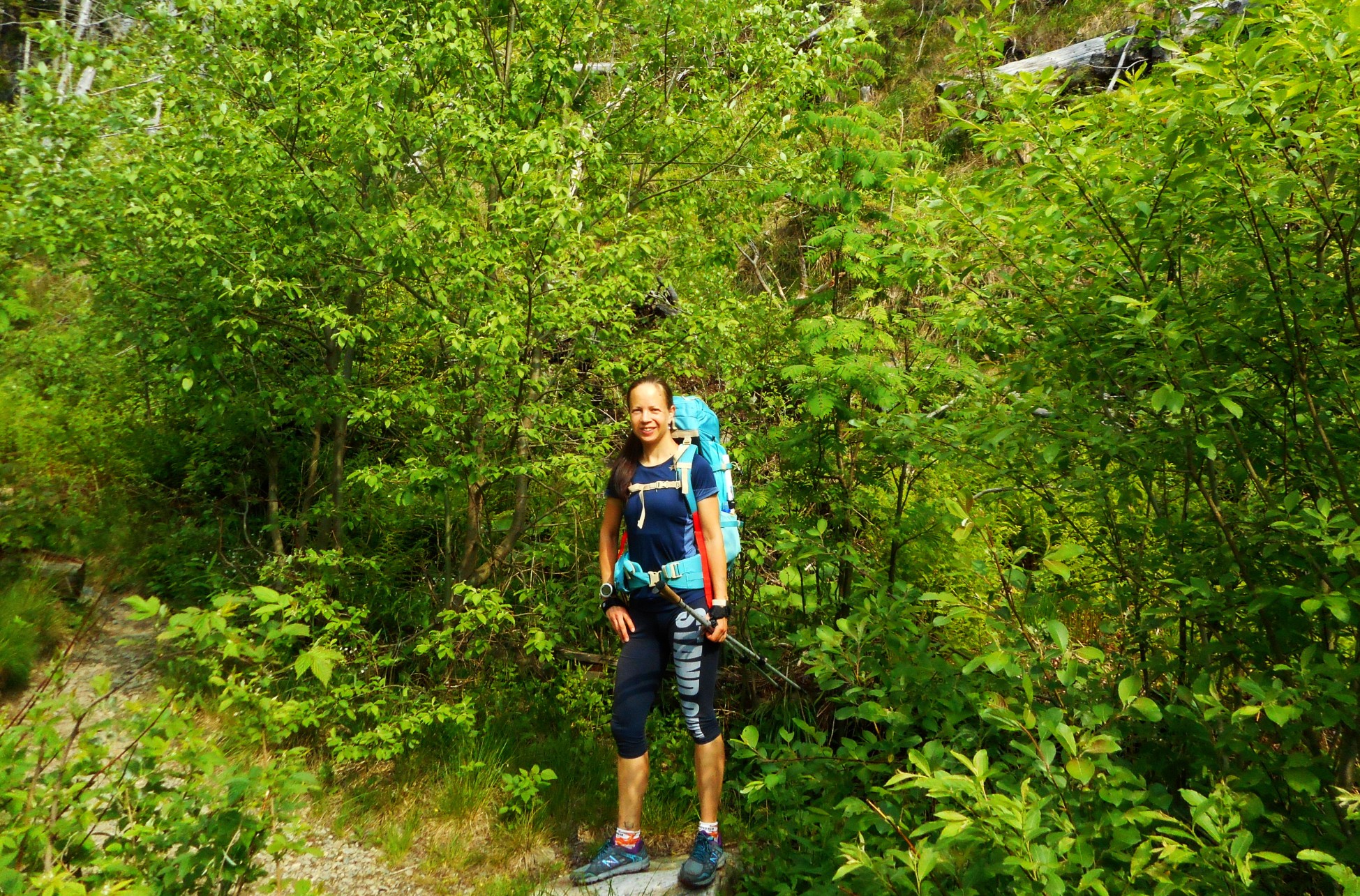 V neděli budíček před sedmou a po rozloučení s chalany šupky hupky na autobus do Karlové studánky. Počasí opět krásné ale už nee tak horké a v údolí Bílé Opavy nádherný chládek, všude zurčící voda, a i s batohem jsem to zvládla překvapivě snadno.