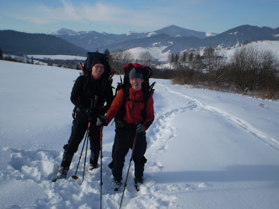 Ranní namrzající mlha a nepřestávající hukot větru nám ale mění plány. Není sice takové počasí, že by se nedalo jít, ale loni jsme strávili dva dny na hřebenech v něčem podobném a už víme, že to nestojí za to. Scházíme z hřebene a včerejší úmorný výstup se mění v lehké klouzání na sněžnicích do hloubky údolí. U malého obchůdku zaháníme čím dál větší deficit vody lokáním minerálek a džusů. Řešíme, co dál a vydáváme se jako loni do Chočských vrchů. Odpoledne vystupujem z autobusu znova do zimy v Lúčkách pod Velkým Chočem.