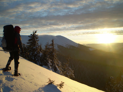 Pár kopců, dolinou na severní stranu hor, večerní cesta, zasněžené svahy. Rychlá chůze, žízeň, spousta potu. Až v deset večer nám bylo jasné, že jsme nezabloudili a po fanatickém nočním pochodu sešli po lukách k salaši. Uvnitř staré polorozpadlé salaše jsme postavili stan a začali vařit a roztápět sníh na čaj. Kolem půlnoci jsme po obří porci těstovin usnuli, ale v nožkách nám ještě trošku cukalo únavou.