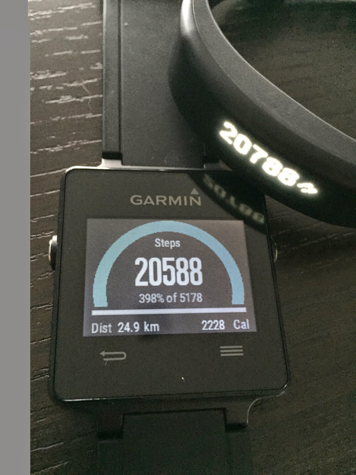 Při používání jako denní tracker jsem objevil jednu rozdílnost oproti Vívofitu a Vívosmartu. Vívoactive měří kroky o dost přísněji, takže třeba při čištění zubů už nenapočítá 600 kroků. Při běhání ale počítají oba téměř stejně, jak je vidět na fotce o kousek výš.