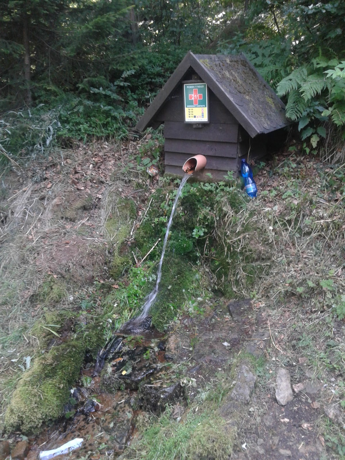 to jsem si hned vzpomněl, jak v rádiu říkali, že je letos extrémně málo vody, jiné studánky měly naštěstí vody dost, že jsem nejenom vak mohl doplnit, ale i krásně se schladit v ledové vodě.