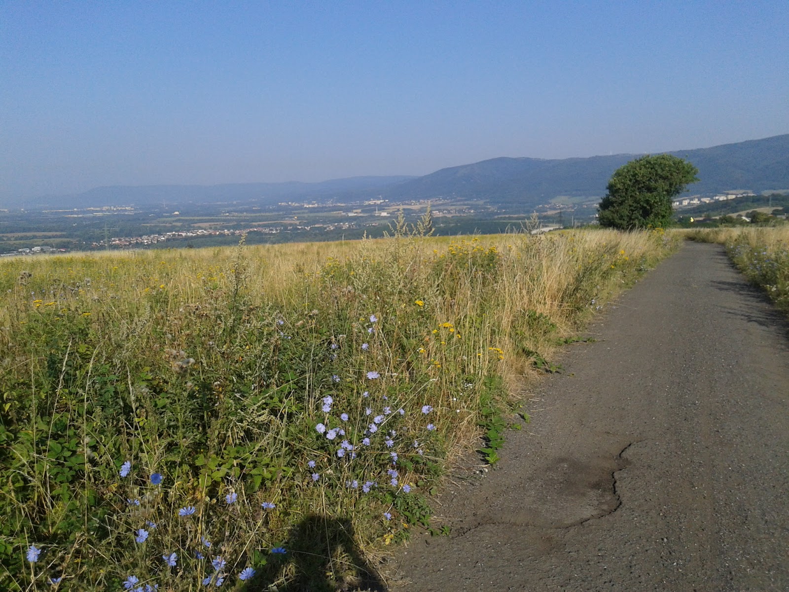•  Moje trať se na mnoha místech křížila s cyklistickým závodem Krušnoton, z jejich webu jsem později zjistil, že měli několik tras a mnoho kategorií. Veselé právě bylo to, že rychlost s jakou mne míjeli první skupinky cyklistů se postupně snižovala a s časem byla stále menší a menší. V kopci u Cínovce jsme se už skoro rychlostně srovnali. Pořadatelé závodu, kteří dělali „rozvodčiky“ ukazovali i mě kde je dělení trasy na 110 a na 180 km, což jsem ocenil a vzápětí jsem s jinými zase probral, že mě navigují jinam (špatně) a posílají mne tam, kam nepotřebuji. I když moje trasa vedla jinudy, tak se s jejich trasou mnohokráte potkávala. Nejlepší to bylo na Dlouhé louce pod Vlčí horou, kde jsem si odskočil na pivo a podle oblečení, startovních čísel a povídání, si tam odskočilo i mnoho cyklistických závodníků. Volali domů, že je vedro a že jim to dnes nejede a tak podobně. Já sám jsem se tam zasekl na pivo a dvě malinovky a i tak jsem z hospodské zahrádky odcházel dříve než oni, asi nečetli ten slavný blog o závodění. 🙂