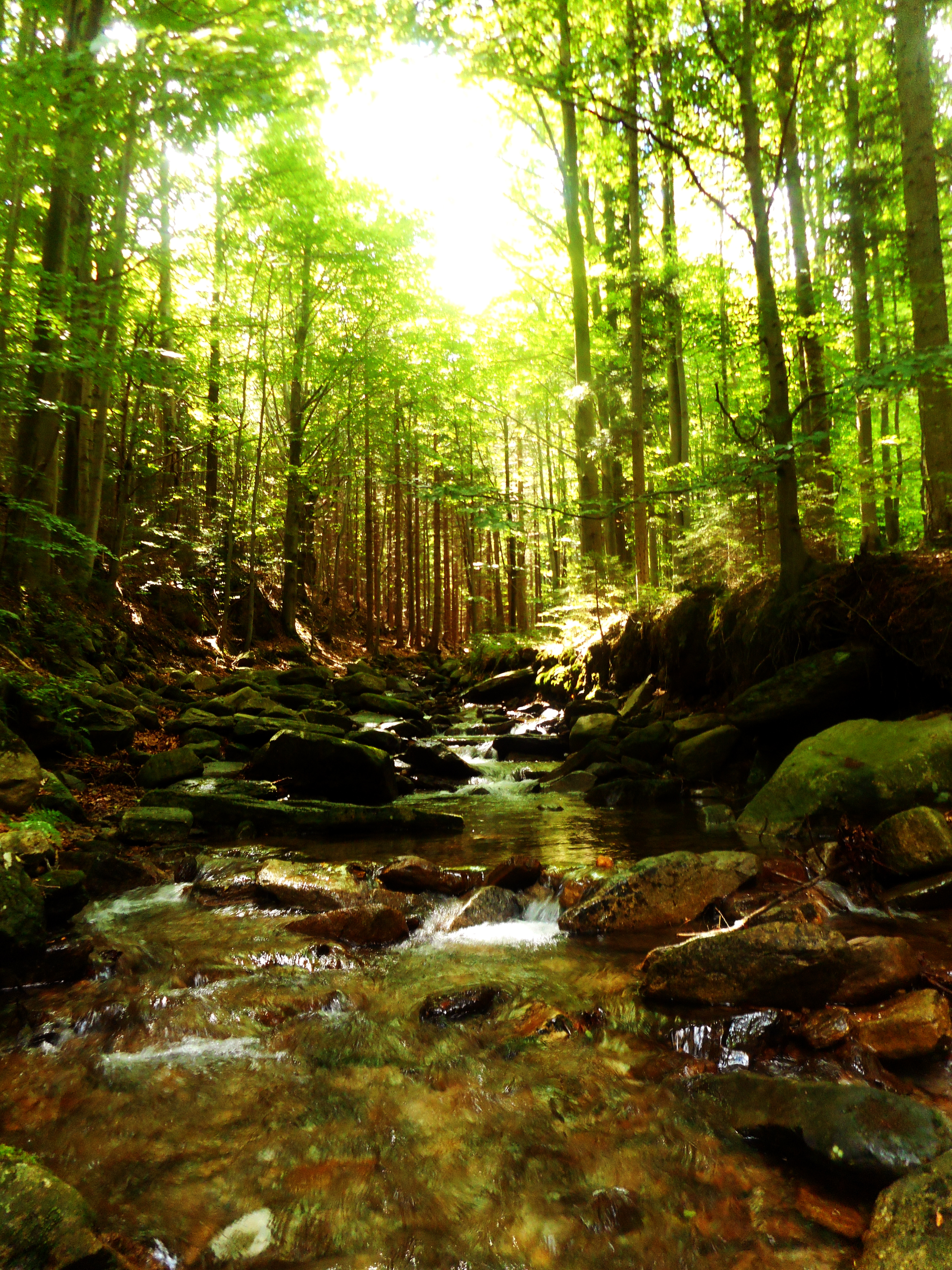 Dál už jsem pokračovala podle plánu- na Vřesové studánce jsem si doplnila vodu a rychle pryč. Kolem rozcestí pod Červenou horu a Kamenného oka jsem seběhla na druhou stranu hřebene, po zelené přes Točník ke Keprnickému potoku. Zde jsem si dala další přestávku-vysoce ledovací regenerační koupel nohou. 🙂