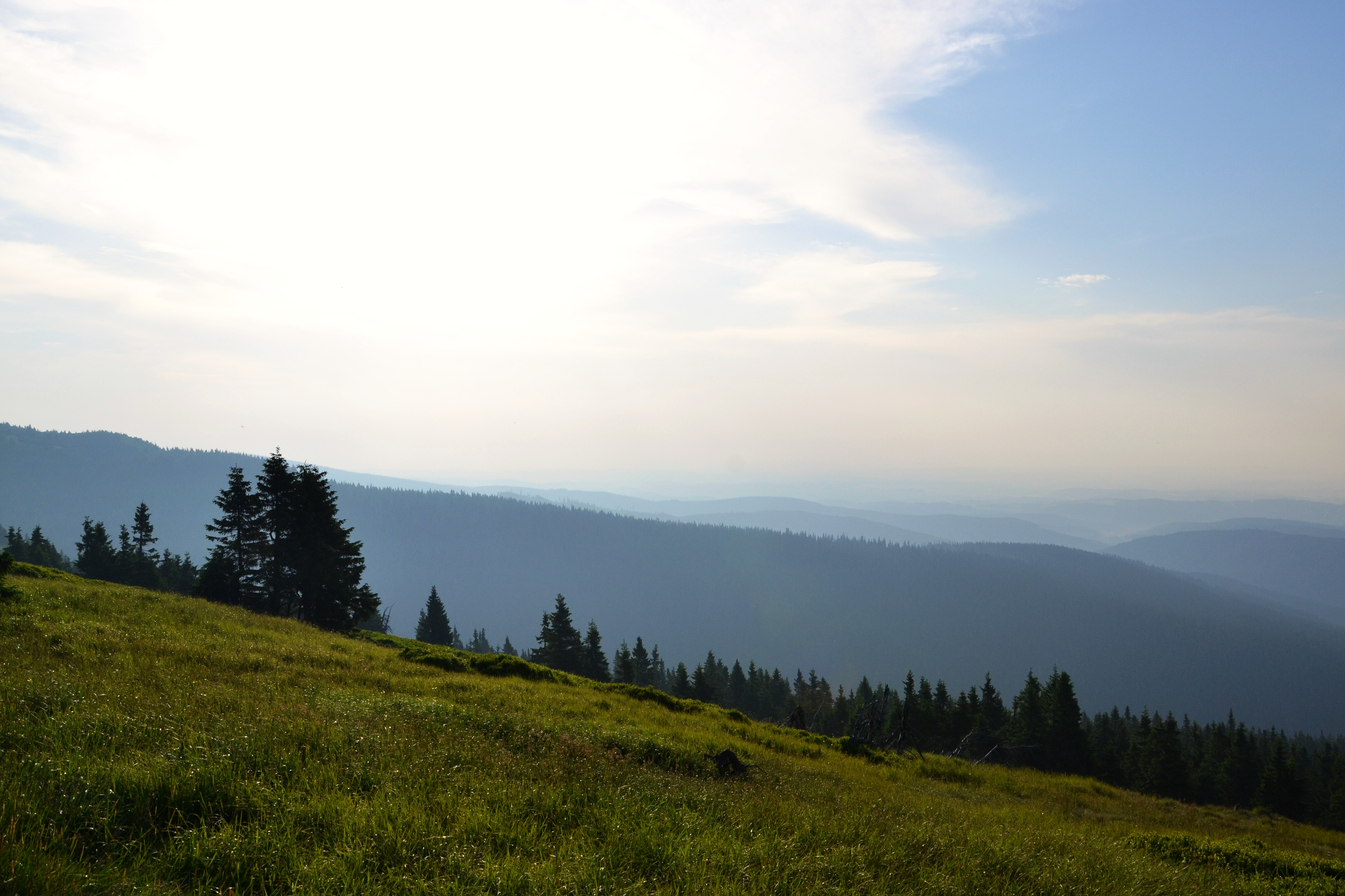 Navíc nahoře na Dlouhých Stráních bylo zase jednou azuro (což se mi moc nestává) a i když byla nádrž poloprázdná, stálo to za to. Ač to vypadalo, že by se se mnou i bavil, nedošlo k tomu a já pokračovala dál po červené přes Malou Jezernou, kde jsem si to zapomněla opět zkrátit a napojila se na cyklostezku. Mlčky o samotě jsem tedy musela jít dál. Bylo už kolem šesté. Věděla jsem, že chci dojít na nocleh na Jelení studánku, a i když jsem trochu přemýšlela jestli nezůstat pod Dlouhými Stráněmi, plán na večer a druhý den mě přesvědčil. Navíc času do setmění bylo ještě dost. Před půl osmou jsem konečně dorazila na hřeben, slunce se už sklánělo a všechno začínalo zlátnout.