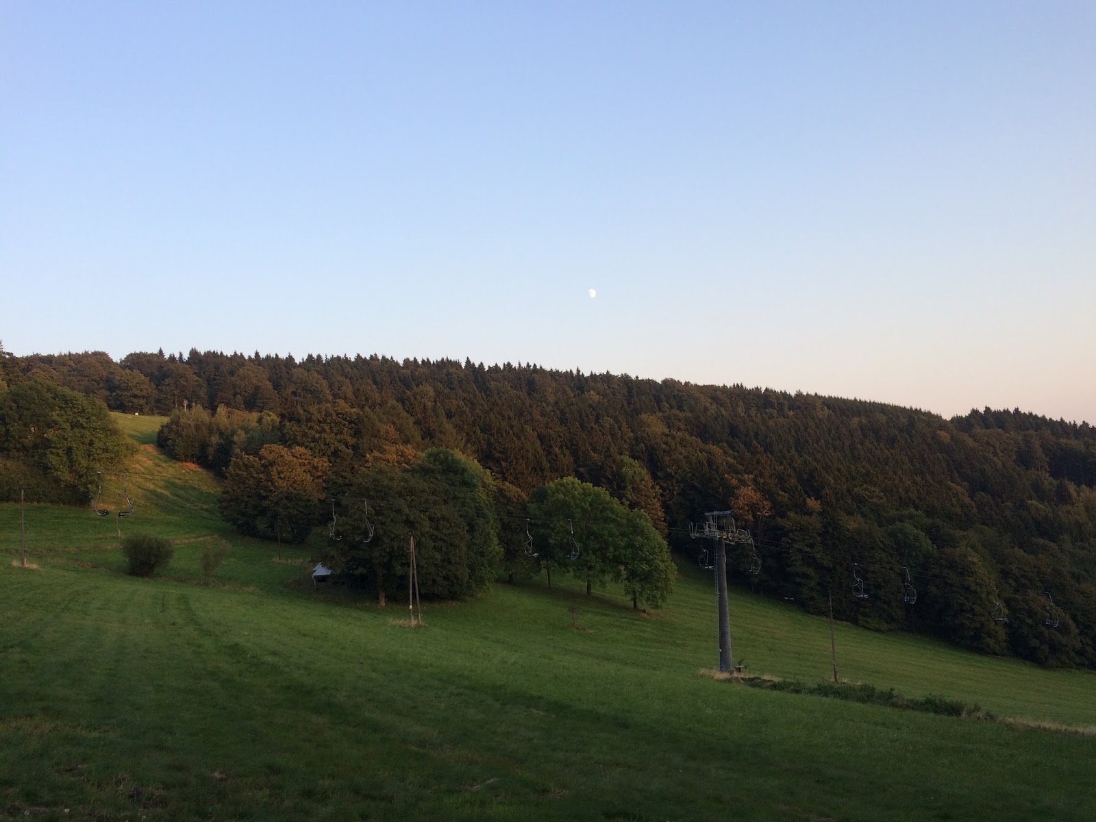| Zeshora je sjezdovka docela romantické místo, s blížícím se soumrakem. |