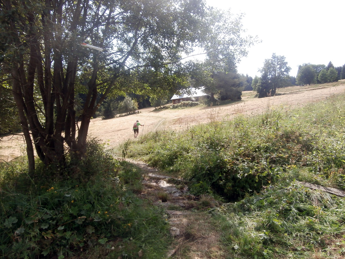 Počasí je super ale ne na tenhle závod jen cestou do kopce padly 2 litry vody ze zasob naštěsti víme že tam bude nejlepší pramen v krkonošich to je jak živá voda ale my máme za sebou max 7km z 38km UFF
