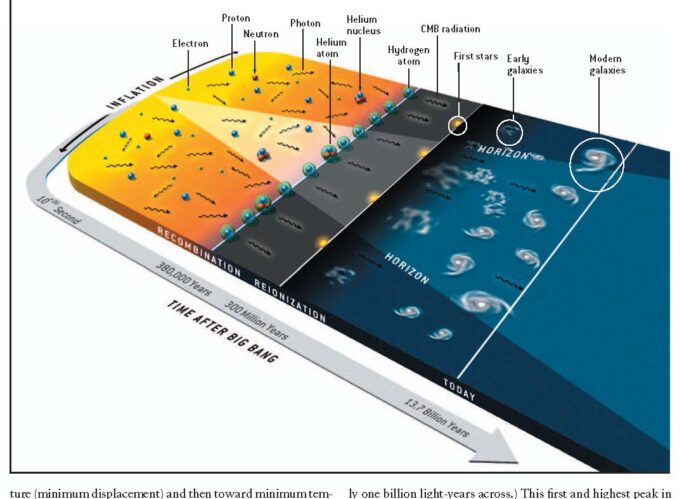 Až do této chvíle byl vesmír plný volných protonů, neutronů a elektronů – všechno bylo ionizované. Světlo se nemohlo volně šířit, protože neustále naráželo na volné elektrony a odráželo se zpátky.