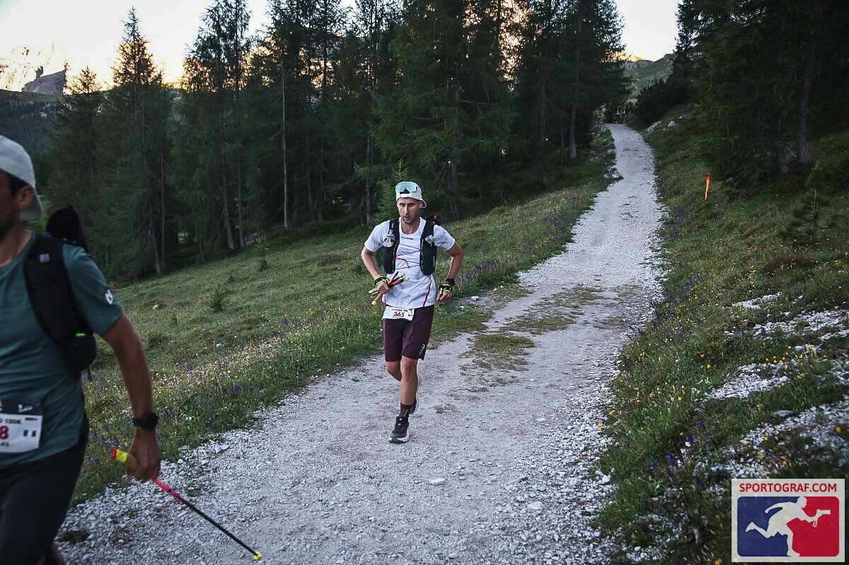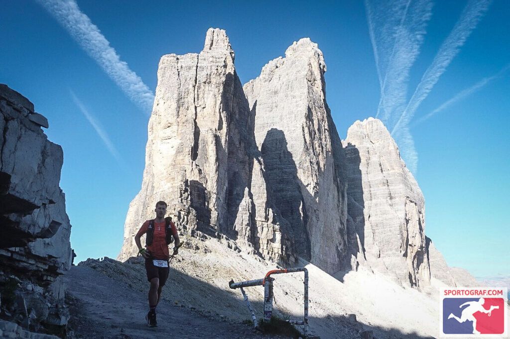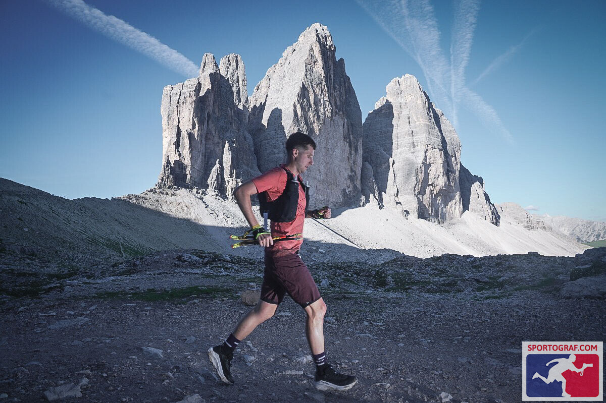 Stoupáme na Tre Cime, nejvyšší bod celé trati, do výšky asi 2500 metrů. A já mám fakt velkou radost. Splnilo se mi totiž to, co jsem tady opravdu chtěl zažít – východ slunce v až kýčovitě krásných skalách je prostě naprosto pohádkový. Když probíháme kolem nejikoničtějšího skalního útvaru je slunce už relativně vysoko na obloze a já mám v nohách už přes 50 km a asi 3000 výškových metrů. Lehký náznak únavy pak rozbíjí dlouhý seběh k občerstvovačce v polovině závodu. Dávám další gel, zapíjím vodu a těším se až si v Cimabanche, kde na mě čeká batoh, který jsem si tam nechal ze startu poslat, přezuju ponožky, najím se a vyměním tričko.