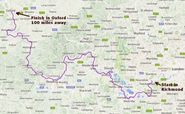Při vzpomínkách na Londýn a detailním studiu místního dopravního systému nakonec volím naprosto punkovou, nicméně velmi promyšlenou variantu. Přiletím v pátek odpoledne na Gatwick, relativně na lehko, bydlení mám na Victoria Station, kam mi jede expres z letiště (důležité pro návrat!) a kam se dá rychle dostat buď autobusem, nebo kombinací vlak-metro z Oxfordu. Plánuji, že brzo ráno vstanu, kufr nechám na recepci, vyrazím v závodním na start (Richmond, asi 30 minut metrem) .. Tam se zaregistruji, odevzdám balíčky do cíle a na stanice.. A pak.. pak už jen v „klidu“ poběžím 160 km podle řeky směr Oxford. Limit je 28 hodin, kdybych nedoběhl, tak je to celkem hodně komplikované.. mám večerní let, spolu s včasným nástupem mě to bude posunovat k rychlejšímu dokončení..