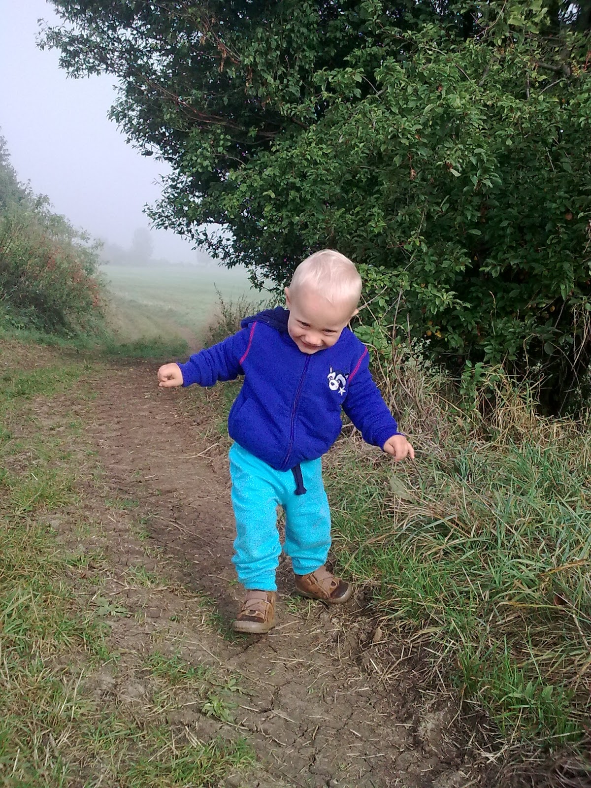 Že jsem tentokrát šlápla opravdu vedle, je jasné už od samého začátku. Po polní cestě se s kočárkem jede skutečně mizerně. Tak to nevadí, že tu Milešovku dneska nedobyjeme. Zdoláme jí s Augustýnkem za pár let, až bude trošku větší. Hmm… :-/ Ale stejně, minimálně za ten pohled na radostného synka pobíhajícího v podzimním mlhavém ránu v polích mezi sytě červenými šípky a jabloněmi to stálo!
