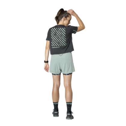 Výkonné tričko Trail s módním střihem crop a technickou tkaninou z recyklovaných materiálů zaručuje vynikající odvod vlhkosti. Úprava Polygiene brání vzniku nepříjemných pachů. Design s grafickým potiskem na zádech.