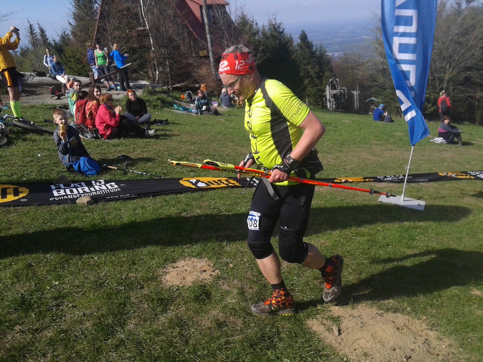 Loni jsem běžel zbytečně nabalený a táhnul jsem zbytečně moc vody. Letos volím strategii „na lehko“ mám je mobil a láhev s pitím do ruky. Jako loni běžím bez hůlek, v kopci mne tak spousta lidí předchází, ale zase mi pak nic nevadí při seběhu, tam zase já spoustu lidí předběhnu.