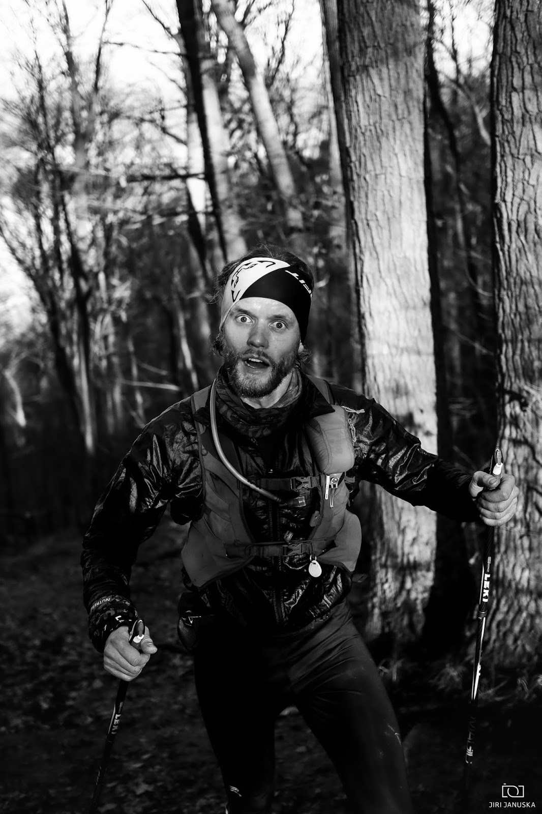 Kolem se prožene něco maličkého, rychlého a usměvavého. „Ha, Jožo!“ rozpoznám ho. Teď se musím za něj zařadit a držet se ho jako klíště. Stejně jako na zamlžené Podkronošce, kterou jsme spolu vyhráli. Ale kopec lesem je čím dál strmější, sotva se ho držím až mi zdrhne. Kolem proletí i Zbyněk Cypra odrážejíc se hůlkami. Jak tak na něj koukám, docela lituju, že sem si hůlky nechal ve startovním depu. Vezmu si je když tak až na druhou část z Berouna do Prahy.