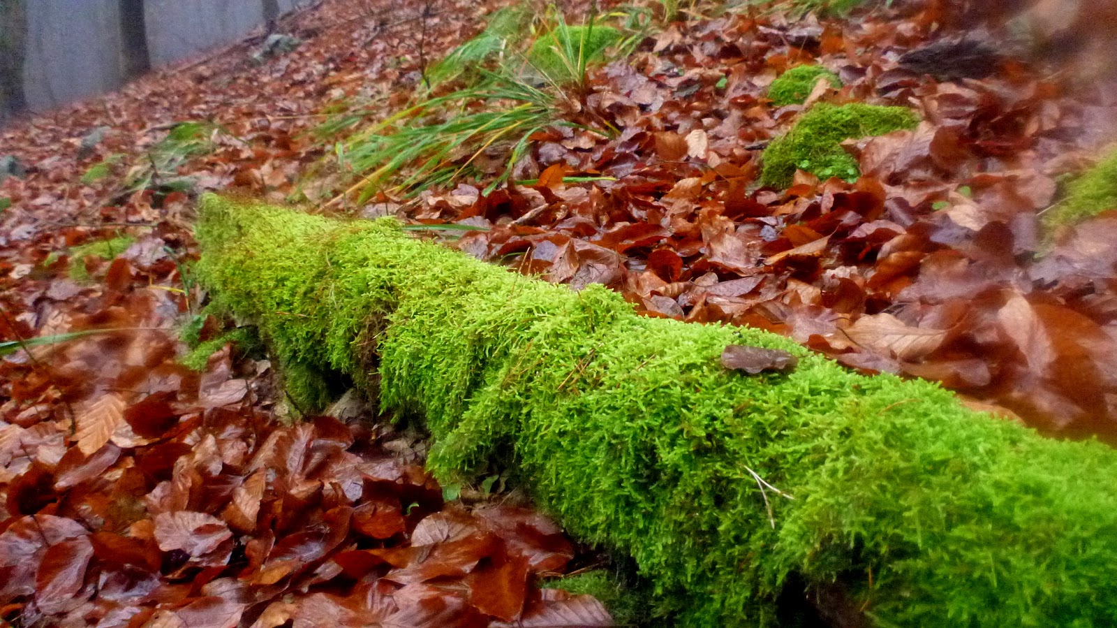 Z kraje to je úplně v pohodě, dokonce až skoro poetické, jak dočervena popadané listí v klesání na trase kontrastuje se zářivě zelenými mechy.