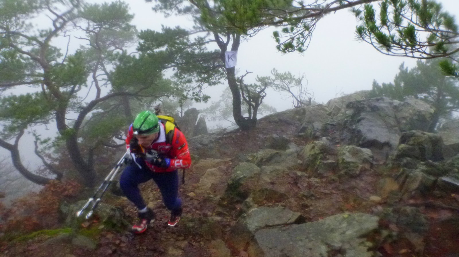 S Gáborem(1.) se vyškrábeme ke K11, která je vysoko na skále. Označíme si výkaz fixem v čase 4:56 od startu a jdeme dolů ze strmé skály. V tom najednou Gáborovi podjedou nohy. Aby to vyrovnal jakoby poskočí vpřed, těžiště tak dostává před sebe, ale tím získává ve strmé skále i nepřiměřenou rychlost. Snaží se zabrzdit, ale zakopává a s rukami před sebou letí ze skály dolů.