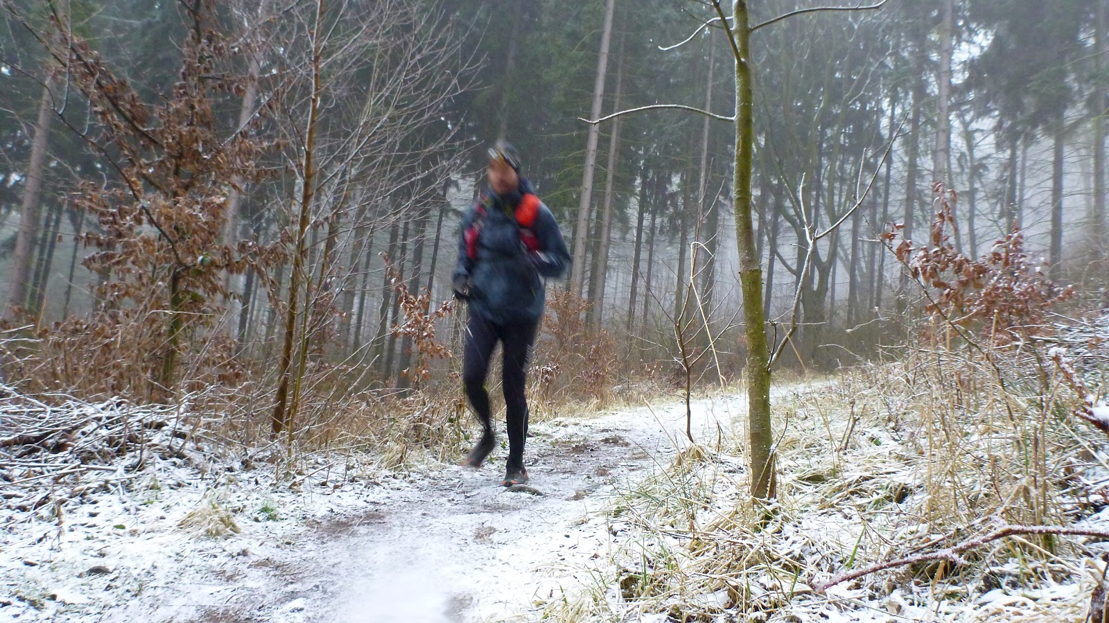 Dál už je to jednoduché, ledové koryto končí a následuje pohodový a rychlý 4 kilometrový seběh až do cíle ve Velemíně. Letím, co to dá v tempu pod 5 min/km a za necelých 20 minut jsem v cíli. Petr už vyhlíží z auta, protože motorest ještě neotevřel. Jak mě vidí, hned leze ven mě přivítat.