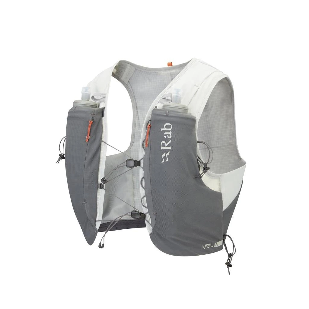 Rab Veil 6 vyniká svou nízkou hmotností – ve velikosti M váží 240 gramů bez lahví, a s dvěma přiloženými 500ml Hydrapak soft flasky to dělá kolem 320 gramů. To ji činí podobně lehkou jako jiné minimalistické vesty zaměřené produkty (Salomon ADV Skin 5 (kolem 203 + 80 g) nebo Ultimate Direction Race Vest (asi 204 + 80 g).