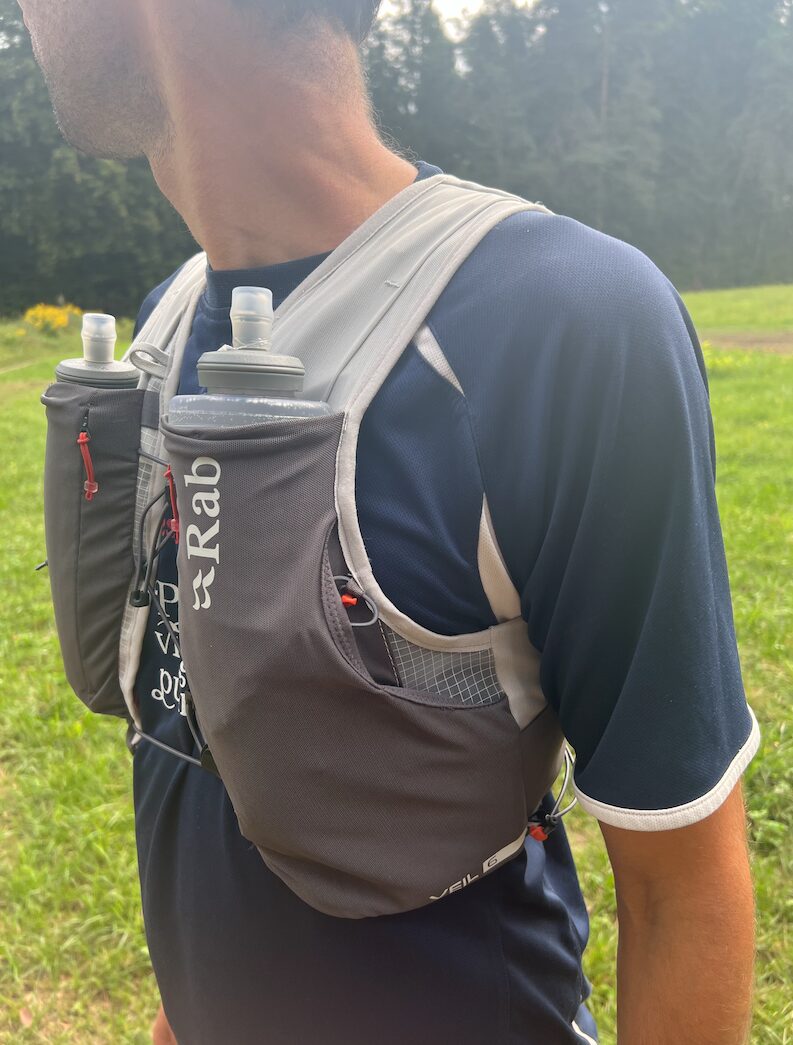 - Těžší vesta Rab Veil 12 pojme dvojnásobný náklad a hodí se pro celodenní běžecké výlety nebo dlouhé závody v náročnějším počasí.