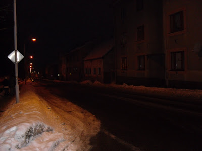Pořád se mi nechtělo, buď jsem se díval na televizi, nebo jsem jedl, byl na Internetu, ale nakonec jsem se odhodlal a kolem půl čtvrté odpoledne vyrazil. Protože jsem se minule na trasu 5 km zbytečně moc nabalil a díky tomu byl hodně pomalý, zvolil jsem pro tentokrát pouze kšiltovku, čepici, čelenku, mp3 přehrávač se sluchátkama, šál na pusu, bundu, mikinu, triko s dlouhým rukávem, „tříčtvrťáky“ kalhoty, podkolenky, ponožky, čapáky s kšandami a běžecké boty. S sebou jsem si vzal ještě malou baterku, sušenku, fotoaparát a nesmeky. Nevěděl jsem, kudy poběžím, ale v hlavě se mi pořád vracela myšlenka na běh kolem města a vytvoření několika fotografií. Práce s fotoaparátem se mi začíná líbit.