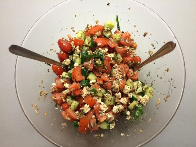 – odpolední svačina: nosím si z domova připravenou slanou svačinu, například nakrájenou zeleninu s tofu, suchar s pomázánkou, ořechy. Když se dostaví chuť na sladké, dám si svačinu a chutě jsou pryč.