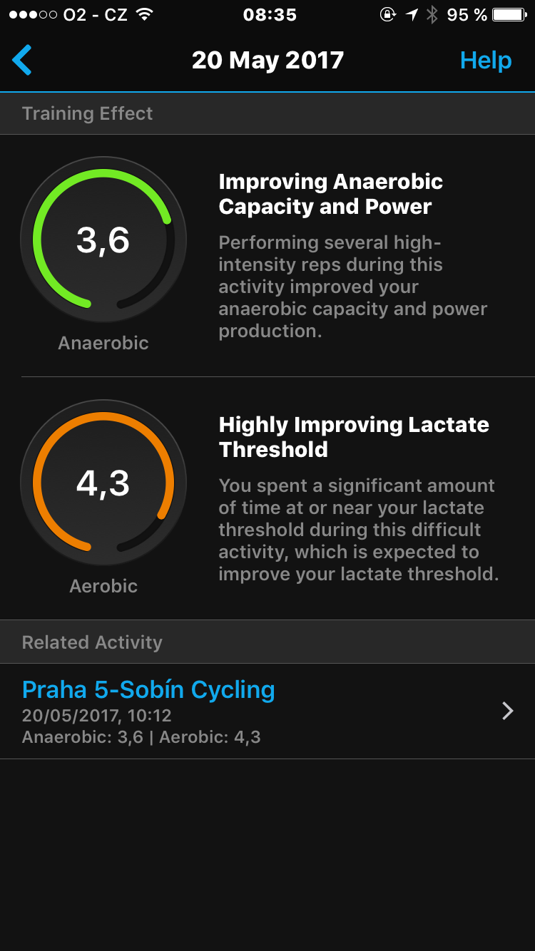Tréninková data: FTP, Training Load, Aerobic & Anaerobic Training Effect