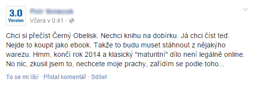 A Zde se asi dostáváme k jádru problému. Je-li někdo ochoten platit za prémiové služby na sdílených i nelegálních úložištích. Za RIPOvané a nekvalitní kopie, pak mi z toho vychází, že ten samý uživatel by měl být ochoten zaplatit i za nákup legálního díla v HD kvalitě, s případnými bonusy od autora nebo vydavatele. A tady si přiznejme, zaspali právě vydavatelé, kterým ujel vlak a po nich slepě papouškují i někteří autoři. Problém opravdu není v „pirátství“ jako takovém, ale v nepochopení nového obchodního a distribučního modelu, který nám technologie se vším pohodlím a komfortem umožňuje.