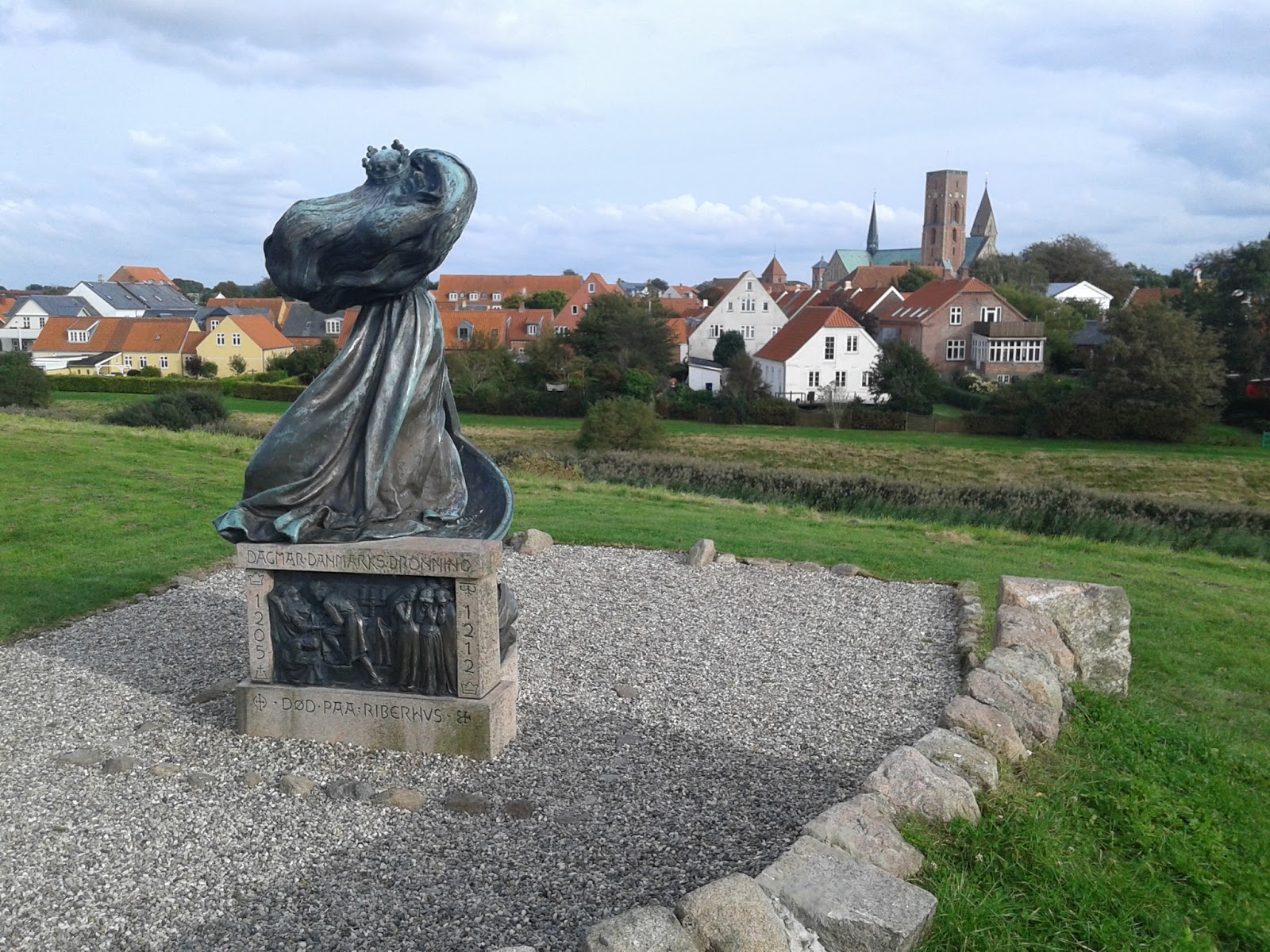 Cestovali jsme vozem, vyrazili jsme ve čtvrtek ráno z Prahy a vzdálenost 1100km jsme díky dobré partě urazili snadno a pohodově. Petr naplánoval návštěvu nejstaršího Dánského města Ribe s nádherně zachovalým středověkým centrem. Navštívili jsme i divnou katedrálou (směs všech stylů), vylezli na věž. Nahoře jsem se rozhlíželi a hledali královský hrad, kde má mít královna Dagmar (dcera Přemysla Otakara I.) pomník. Ať koukáme sebe líp, nikde nic nevidíme, dole se ptáme pána na pokladně, říká, že hrad tu není, jen pozůstatky opevnění. Fajn už jsme doma, to jsme viděli a jdeme tam, podívat se na českou stopu v Dánsku. Pomník má pěkný a z hradeb kopeček ještě zbyl.