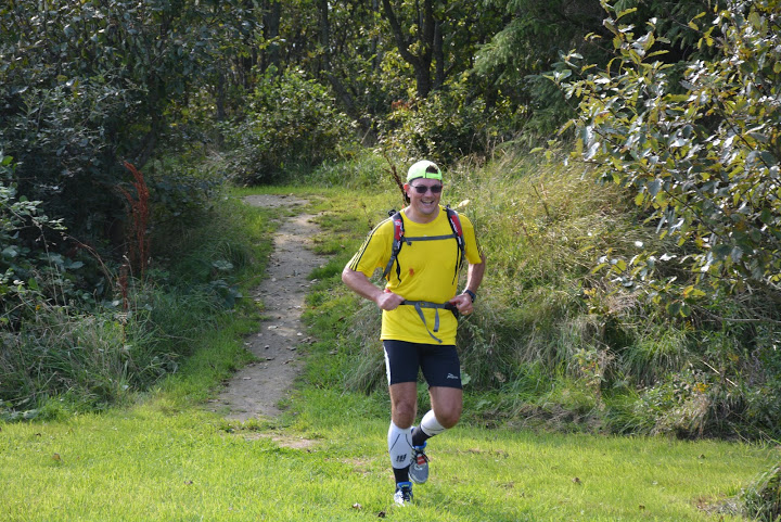 Je to doják, udivuje mě, že na tak malé městečko jsou schopni vytvořit atmosféru srovnatelnou s akcemi PIMu, jen tady je to pro 70 běžců. Běžíme úžasnou krajinou, stále je na co koukat.
