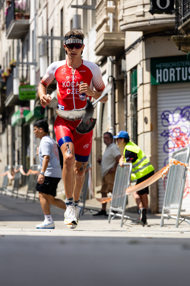 A dopředu se posouval také na běhu! Nezastavilo ho horko a v jednu chvíli dokonce držel třetí pozici. V posledním okruhu ho ale předstihl jeden ze soupeřů a po modrém koberci v cílové rovince tak Kočař proběhl jako čtvrtý. Historie se tak opakovala, protože podobně přišel o medaili i během úterního závodu v terenním triatlonu, kde dokonce dojel do druhého depa jako první.